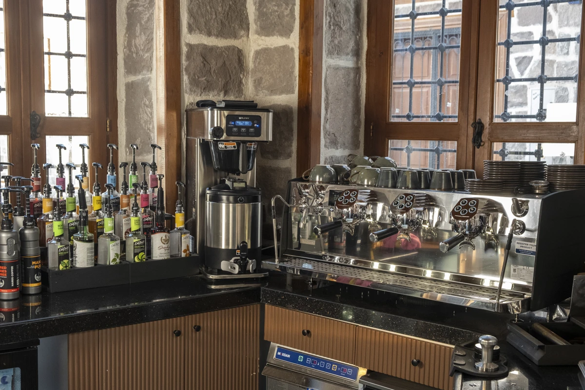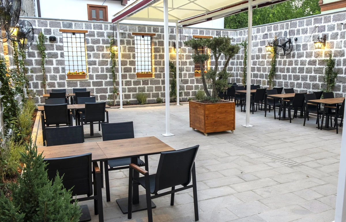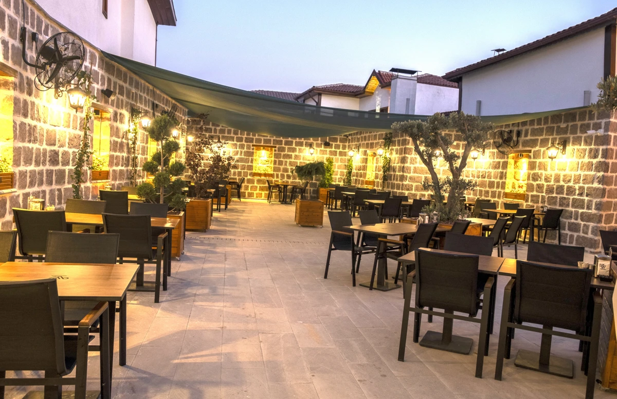 Vitalen Cafe'nin kahve ve tatlı alanı, zarif peyzaj çalışmalarıyla çevrili, ferah ve samimi bir mekân. Şık ve konforlu oturma alanlarıyla, kahvenizi ve tatlılarınızı keyifle tüketebileceğiniz rahat bir ortam sunuyor. Bahçesinin özenli detayları, burada geçirilen zamanı özel ve huzurlu kılıyor.